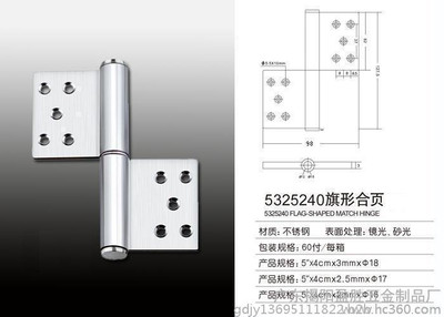 本公司坐落于中國(guó)廣東省揭陽(yáng)市藍(lán)城區(qū)河中工業(yè)區(qū),本廠專業(yè)生產(chǎn)各式旗形合頁(yè),子母合頁(yè),普通軸承合頁(yè),門吸等配件,本廠本著忠誠(chéng)為本,誠(chéng)實(shí)經(jīng)營(yíng),質(zhì)量為上的經(jīng)營(yíng)方式深受各方客戶的歡迎。歡迎廣大客戶來電來廠洽談,來樣訂做。