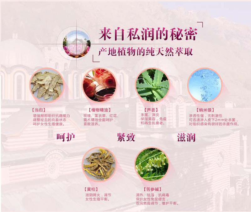 3.獨具親膚性,柔滑竟如體內,更感舒爽方便;?純植物藥材提取,無毒、無味、無刺激、無過敏反應;