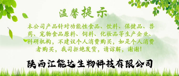 簡   介: 陜西匯能達生物科技有限公司,是以市場為導向,專業從事藥用植物及天然產物活性成份的分離純化的現代化公司,服務于全球的保健食品、添加劑、化妝護理品、獸藥、生物農藥等行業! 公司擁有完整的科學質量管理體系,由多名業內人士組成研發銷售隊伍,并先后與西北農林科技大學、西北大學等多所院校建立長期技術合作關系。其產品涉及植物有效成分單體、標準植物提取物、比例植物提取物三大系列,被廣泛應用于藥品、保健品、化妝品、食品添加劑及生物農藥中,滿足了多個行業的需求。公司主要研發產品有:大豆多肽、馬錢苷、苦參堿、歐前胡素、淫羊藿、黃芩苷、熊果苷等數種標準植物提取物和生物農藥原料及比例提取物等產品體系。 公司生產工藝成熟穩定,生產設備先進,從原料篩選-加工-檢驗-出廠-售后服務等各環節都嚴格制定了質量控制辦法,整個生產流程都嚴格按照ISO9001:2000質量管理體系進行。檢測部配有進口高效液相色譜儀(HPLC)、高效氣象色譜儀(GC)、紫外-可見分光光度計(UV)、快速水分測定儀等全套檢測設備,全面控制產品含量、重金屬、微量元素、微生物等各項質量指標,對生產過程進行全方位的跟蹤控制。 公司始終遵循“誠信、專業、雙贏”的企業發展理念;用心服務客戶,為廣大客戶提供優質的服務!竭誠歡迎各界朋友蒞臨陜西匯能達生物科技有限公司參觀指導、業務洽談!