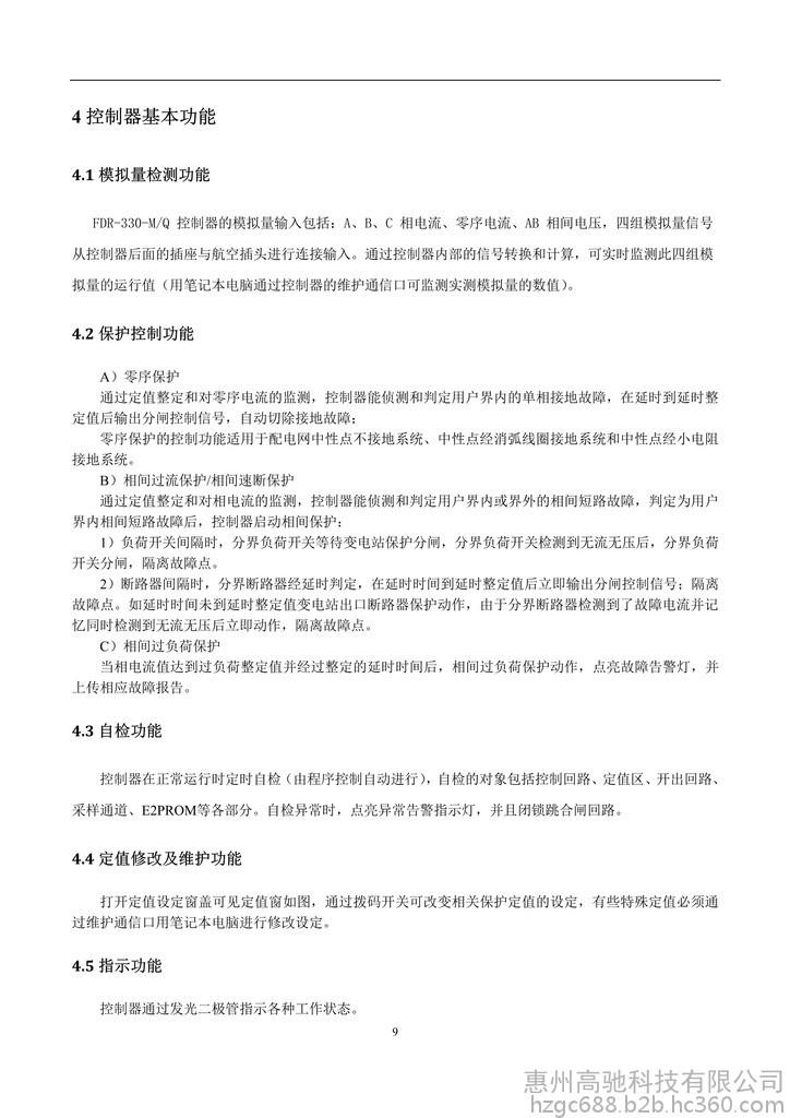 業(yè)領(lǐng)域,為配電網(wǎng)中的饋線、變壓器提供相間過流保護、零序過流保護、外序