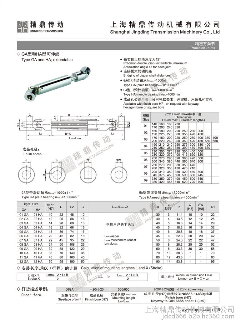 1、 適用于聯結空間同一平面上兩軸β≤45°;的傳動場合,傳遞公稱轉矩11.2-1120N.m