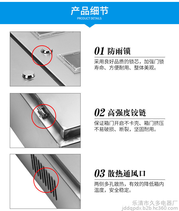 簡   介: 樂清市久多電器廠坐落在浙江樂清市柳市工業區,交通便 捷,至溫州機場及火車站幾十分鐘路程,近靠七里港口、享有“中國電器之都” 的美譽。同時,與風景區——雁蕩山、楠溪江毗鄰。 公司主要產品有:不銹鋼配電箱、不銹鋼電表箱、不銹鋼配電柜、不銹鋼基業箱、不銹鋼JP柜、不銹鋼光伏箱、不銹鋼計量箱、不銹鋼監控箱、不銹鋼戶內外配電箱、不銹鋼動力柜、不銹鋼農網柜、不銹鋼干式變壓器外殼、不銹鋼高低壓箱體、不銹鋼橋架及各類不銹鋼非標箱和成套設備等系列產品,質量可靠,外形美觀,產品廣泛應用于輸配電、機械、冶金、水電、石化、輕紡、礦山、交通等行業和隧道、建筑、舊城改造、城市農村電網改造以及其它建筑項目配套、單機使用和民用。不銹鋼配電箱產品銷往全國各地,具有很高的性能價格比,深受廣大用戶的信賴與好評。   公司嚴守“”的宗旨,從軟、硬件上建立了一套嚴格的質量管理體系,本公司專業生產不銹鋼配電箱、高低成套設備等系列產品。 真誠歡迎經銷商在各地設立銷售分公司,共同發展。 歡迎新老客戶前來蒞臨指導,洽談合作!