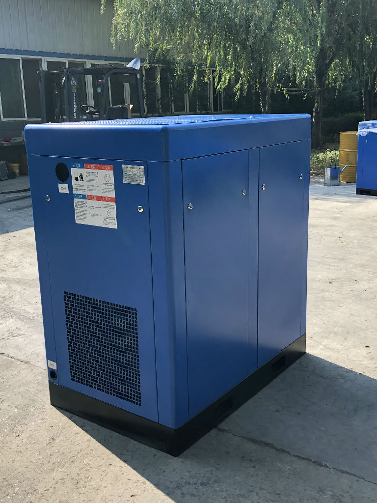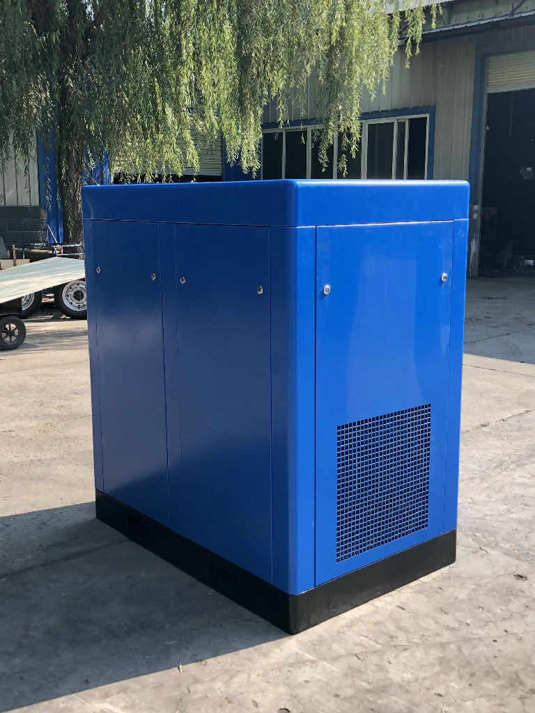 外觀的顏色采用藍色,一眼看上去非常的高端、大氣。2立方工頻式螺桿空氣壓縮機內部的冷卻流場布局合理,冷空氣從機組下側進入壓縮機內,熱空氣從頂部排出,從而使得冷熱交換順暢。