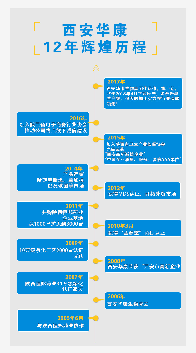 西安華康生物科技有限公司堅持以“綠色健康、魅力健康、時尚健康”的品牌形象立足于市場;倡導“質量優先、客戶至上”的企業精神;肩負“做人類健康的守護神”的企業使命,華康人嘔心瀝血、承古創新,不斷奮進前行!