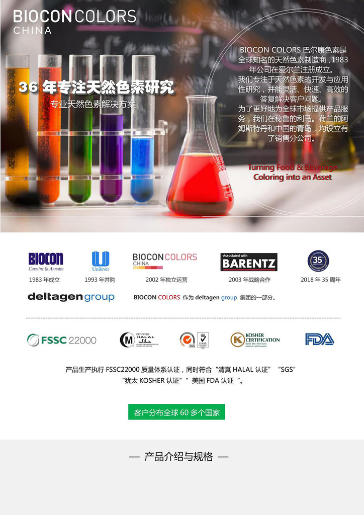 按照行業可分為:烘焙色素、肉制品色素、巧克力色素、面包糠色素、飲料專用耐酸色素、糖果色素、魚糜專用復配色素、果醬色素、化妝品專用色淀、制藥天然色素、黃油奶酪色素、餡料色素等。