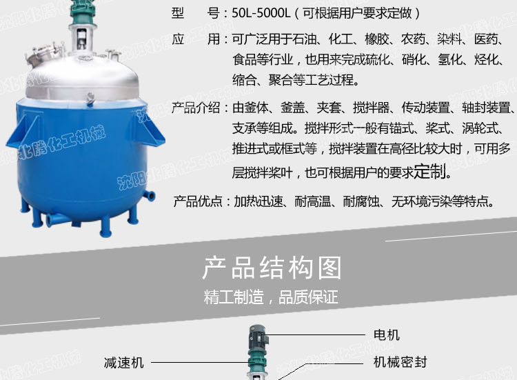 不銹鋼反應釜具有加熱迅速、耐高溫、耐腐蝕、無環境污染等特點,廣泛應用于石油、化工、橡膠、農藥、染料、醫藥、食品等行業,也用來完成硫化、硝化、氫化、烴化、縮合、聚合等工藝過程。