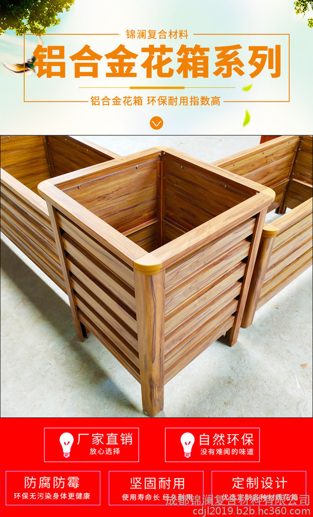 成都錦瀾復合材料有限公司是一家專業生產鋁合金花箱、塑木花箱、防腐木花箱等多樣化花箱的生產銷售廠家。公司產品款式新穎、風格獨特,可根據要求定制,本廠位于四川成都,交通便利,地理位置優越,風景秀美。 本廠生產的產品廣泛適用于的生活小區、休閑廣場、城市街道、園林綠化、商業樓宇、星級賓館、工廠、醫院、學校等各行各業。本廠對產品細節有著苛刻的要求,生產出的產品以其款式新穎、美觀大方、質量可靠、安全耐用、耐腐蝕、抗撞擊、能適應惡劣氣候等優點深受廣大客戶的喜愛。 成都錦瀾復合材料有限公司成立于2016年,為了貫徹“品質有保證、客戶有信心”的理念;在嚴格品質控管的生產流程下,產品合格率高達百分之九十五,在多年的銷售實踐中,公司積累了豐富的生產實踐經驗,確保生產出好的花箱制品。因其好的質量、迅捷的交貨及好的服務而得到廣大客戶的認可,并逐步建立起長期、穩定的合作伙伴關系。 本著“誠信經營、以人為本、開拓創新、以質取勝”的經營理念。不懈努力,與時俱進,做大做強企業。真誠希望與廣大新老客戶共創美好的明天。