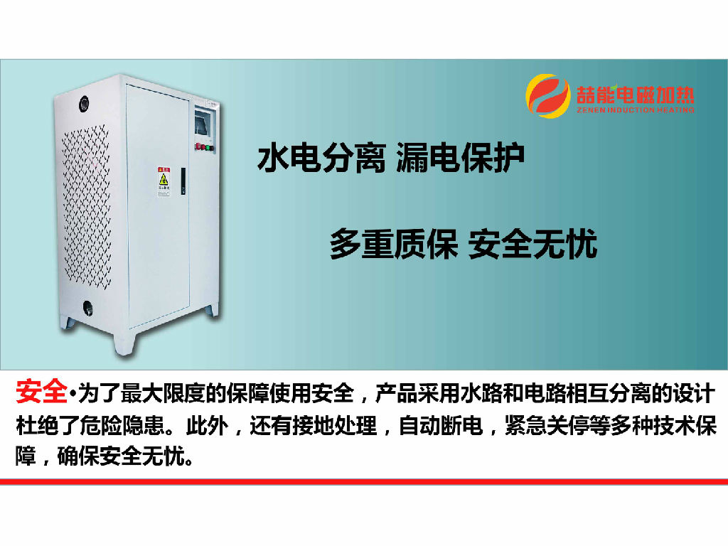 e) 升溫速度快,水電分離,無啟動沖擊電流,使用安全。無任何排放和污染,真正綠色環保。