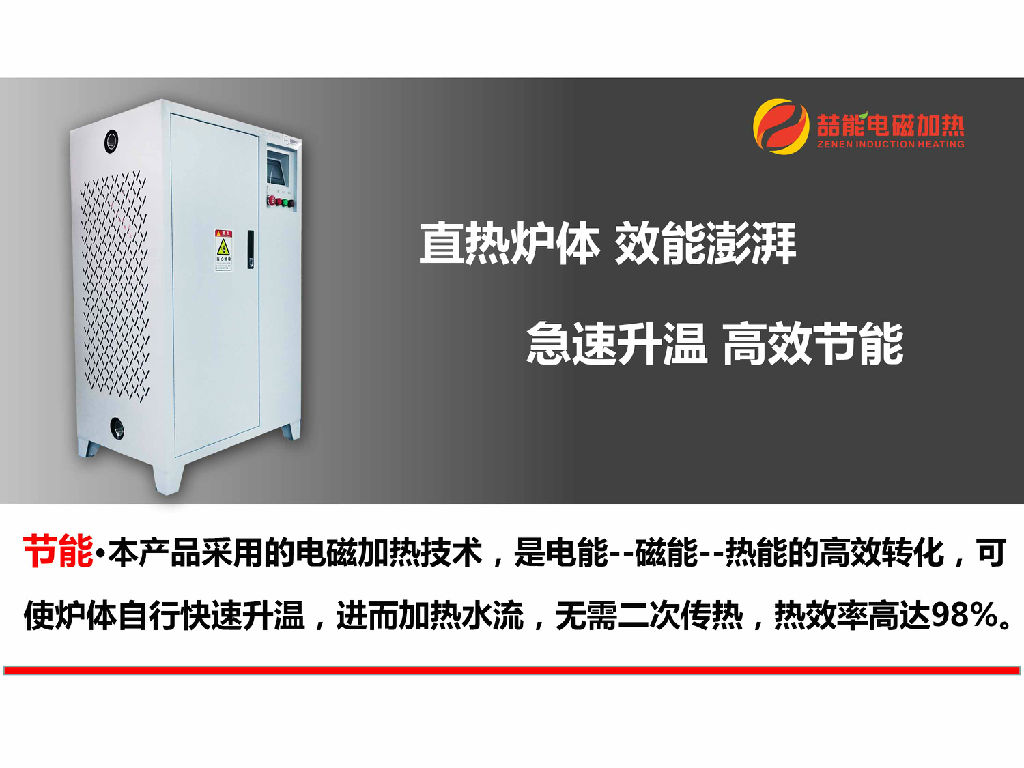 將50Hz工頻電轉換為20KHz左右的高頻交流電,利用變頻磁感應原理,高速變化的電流流過高頻線圈產生變化的磁場,高速變化的磁場產生的磁力線通過線圈內部的金屬管道或容器時產生無數的渦流,渦電流使得金屬管道或容器主動發熱,從而起到加熱管道或容器內的水目的,整個過程是“電—磁—熱”的高效轉化過程,相比傳統電加熱節能效果好。