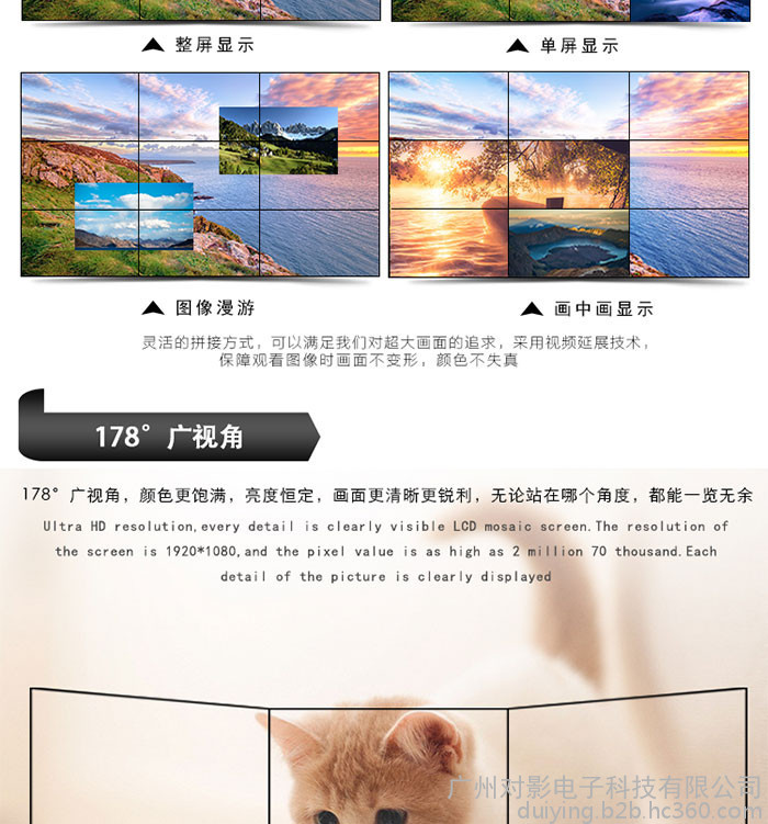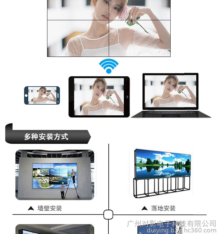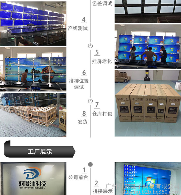 廣州對影電子科技有限公司是一家致力于液晶拼接墻、液晶廣告機、教學、會議一體機、全彩LED屏、等產品研發、銷售、安裝與服務為一體的高新技術型企業。 對影科技始終堅持以研發創新打造核心競爭力,一直持續加大研發投入并不斷致力于技術創新。每年將營業額的20%投入到研發中,公司的技術人員占員工總數的35%以上,從根本上保證了技術的持續創新的能力。 同時,公司采用國際化的現代管理模式,導入ISO9001:2008質量管理體系,并通過了CCC、CE、IEC、ROHS等認證。所有產品均經過嚴格測試,產品性能參數優于行業標準,立志為用戶制造值得信賴的高附加值產品。 對影科技擁有一支專業敬業、即時響應的高效客戶服務隊伍,又形成了以廣州、深圳、北京、上海、南京、成都、武漢、西安、鄭州、杭州、昆明等十多個中心城市為樞紐、覆蓋全國的區域營銷網絡,為客戶提供包括產品咨詢、工程安裝、技術支持和設備維護等全方位的貼身服務。 憑借成熟的質量管理體系、營銷網絡和售后服務系統,對影科技贏得了市場與 客戶的普遍認同,產品先后應用于平安城市、政府、場館、交通、能源、制造、金融、廣電、娛樂、醫療、教育等各個領域,遠銷海外。同三星、夏普、LG、SONY等眾多國際知名品牌建立了長期合作關系,用戶包括以萬科、沃爾瑪、體彩中心等國內外百余家企業。 對影科技本著“以客戶為中心”的服務宗旨,不斷提升產品品質,服務質量和性價比,持續為客戶創造價值!矢志成為您最可信賴的合作伙伴,為共同構建安全、和諧、輕松的高品質生活而不懈努力。