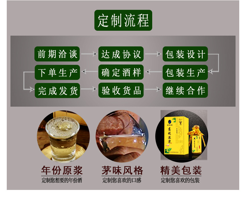 公司為了能做強做大,增強抗風(fēng)險能力,董事會決定于2016年10月注冊獨具匠心酒業(yè)銷售公司,組建營銷團隊,向全國拓展銷售市場,打造醬香白酒知名品牌!公司也為顧客提供OEM貼牌生產(chǎn)酒,個性化訂制酒,重品質(zhì),重服務(wù),一切服務(wù)以客戶的滿意度為宗旨!