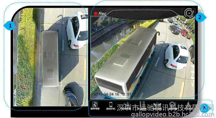 3D全景環視、ADAS、駕駛行為分析等車輛主動安全功能,所有畫面集成在一個屏上顯示,解決車上各種智能設備獨立用屏問題