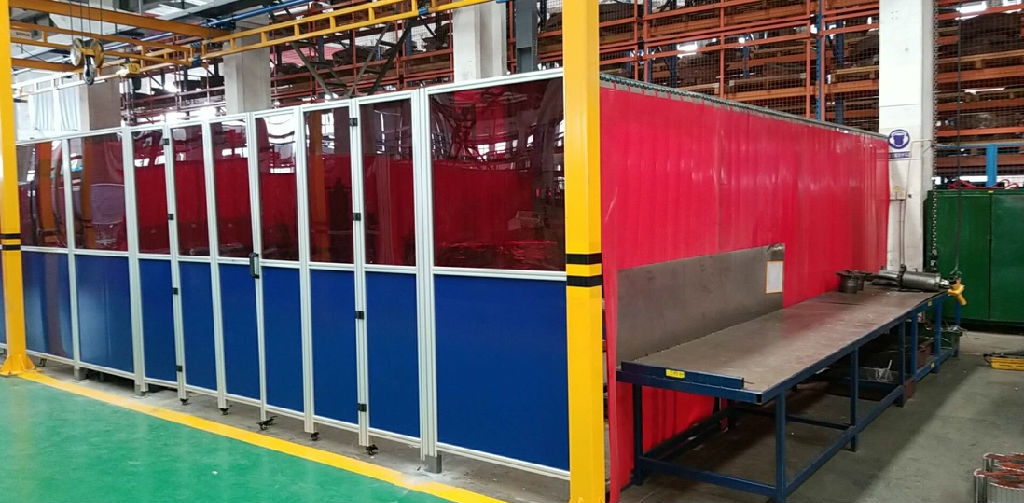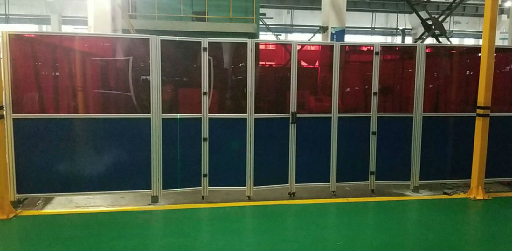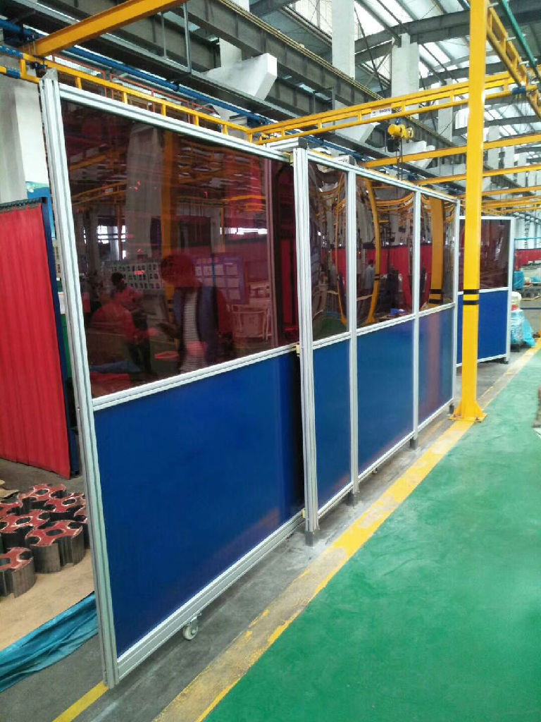 雙色焊接防護(hù)屏應(yīng)用于車間的焊接防護(hù)以及隔檔焊渣飛濺,美觀大方,且防弧、防塵性能出眾。